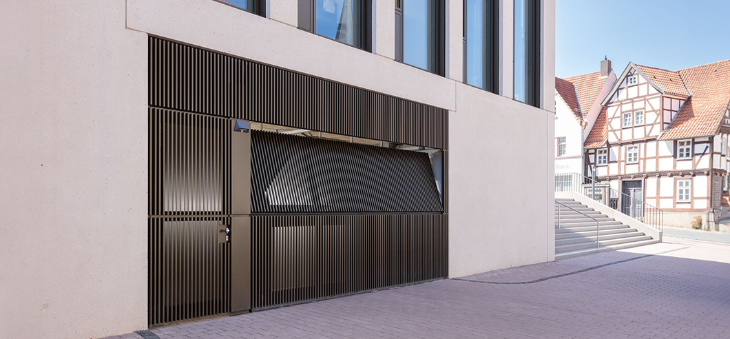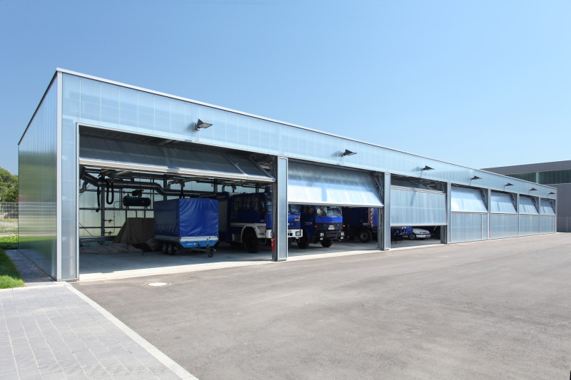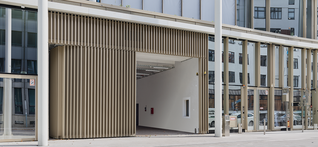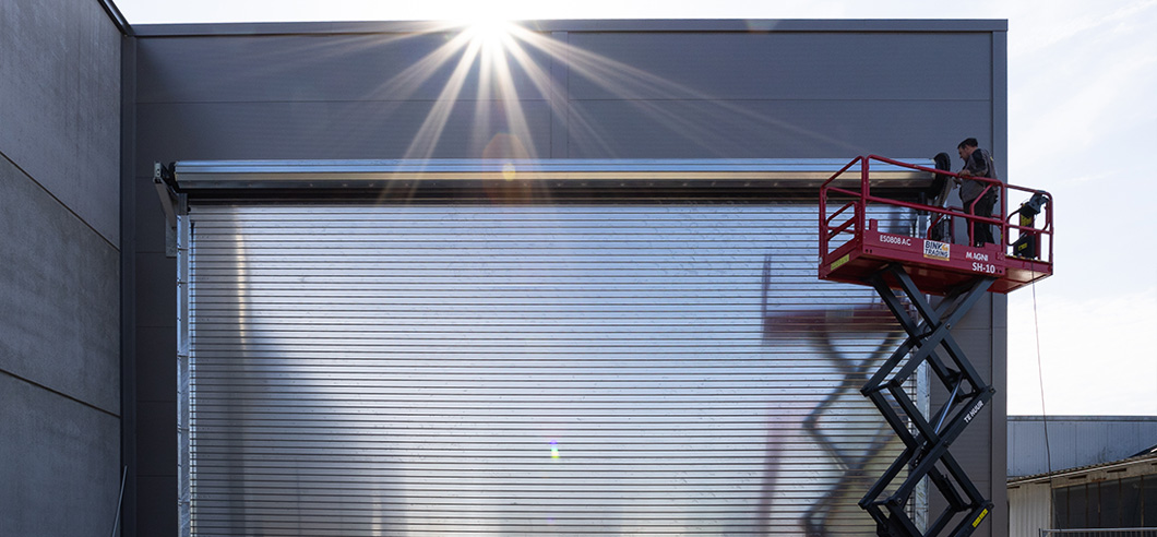 Möglich wird das durch teleskopierbare Führungsschienen, die sich beim Öffnen mit anheben, sowie durch integrierte Sicherheitssysteme wie Totmannsteuerung und vorauseilende Lichtschranken. Ergänzt durch Schlupftüren mit Zugangskontrolle vereinen die Tore höchste Sicherheitsstandards mit maximaler Effizienz.