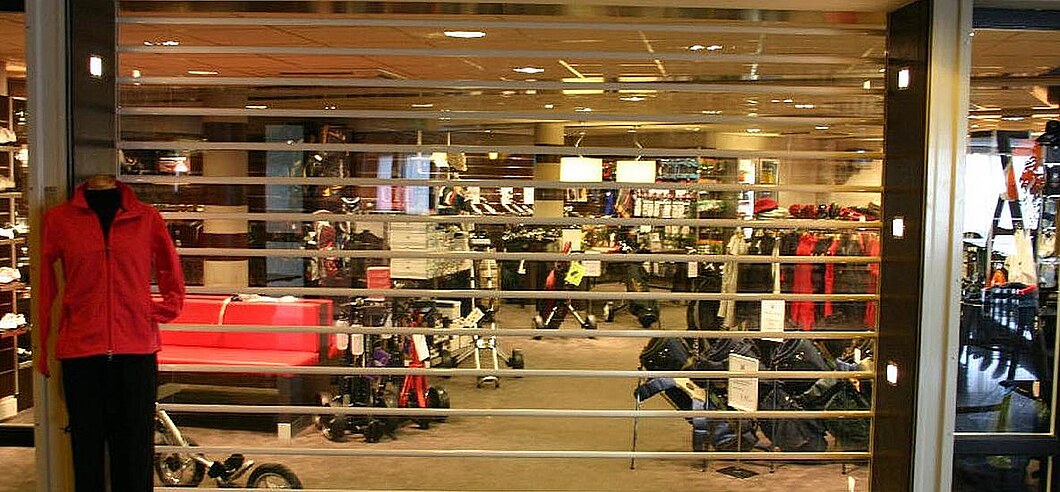 Transparente Rolltore verbinden Sichtbarkeit mit Sicherheit und sind damit die ideale Lösung für Ladenabschlüsse in Einkaufszentren oder auch für private Anwendungen wie Terrassenabschlüsse.