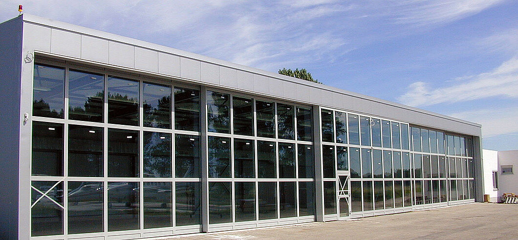 Die Tore überzeugen durch ihre praktische und platzsparende Konstruktion: Da sie seitlich geöffnet werden, bleibt die gesamte Durchfahrtshöhe erhalten – ein entscheidender Vorteil bei hohen Fahrzeugen, Maschinen oder Flugzeugen.